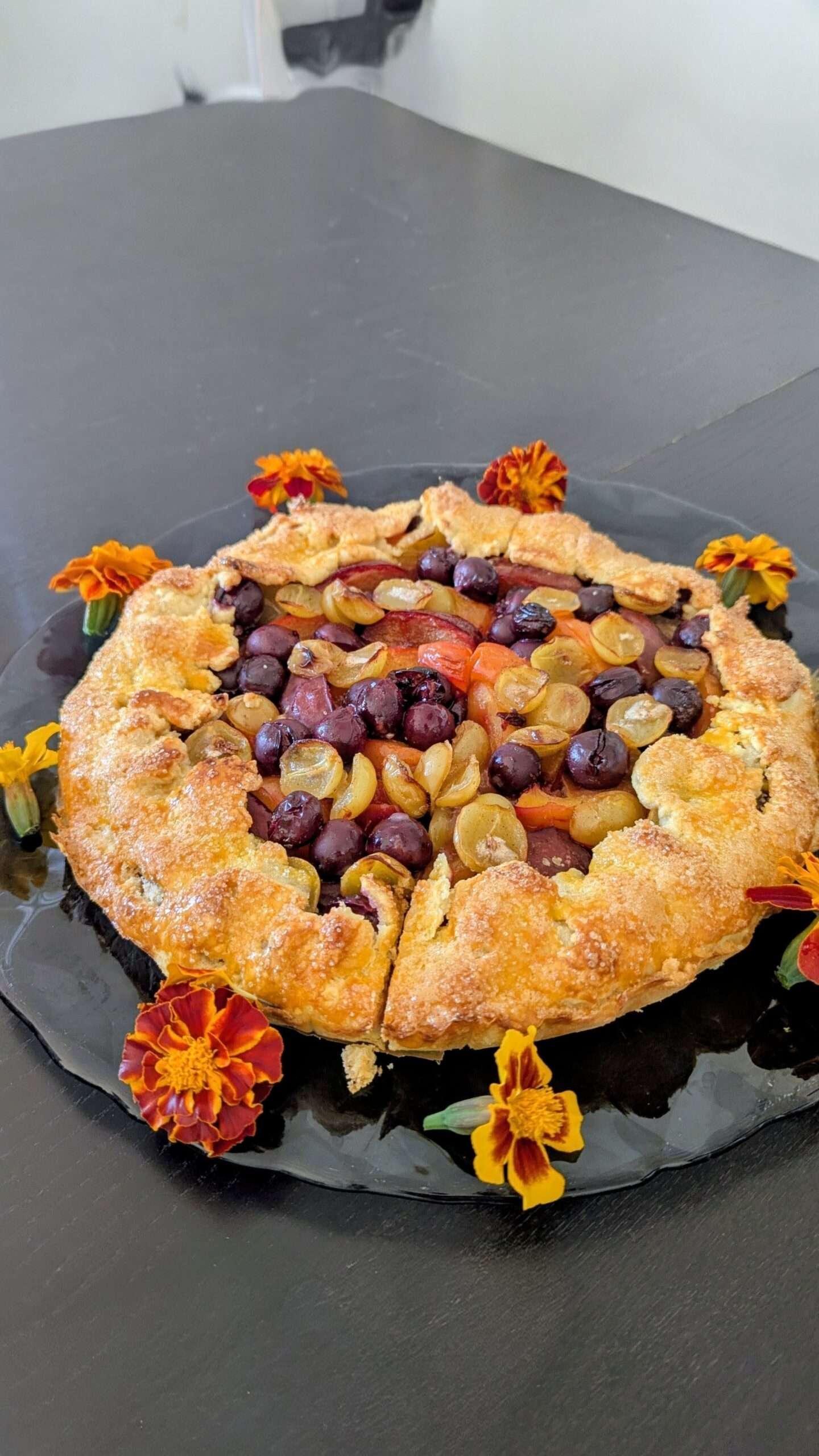 Tarte aux prunes et raisins